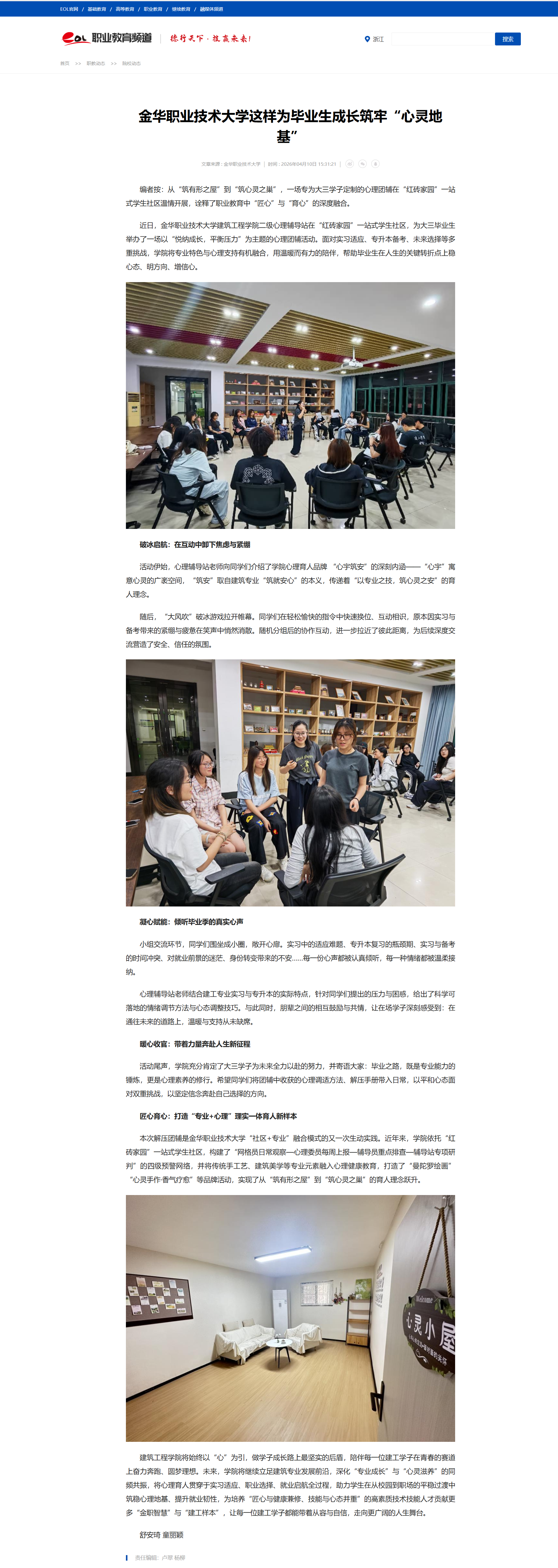 中国教育在线:金华职业技术大学这样为毕业生成长筑牢“心灵地基”